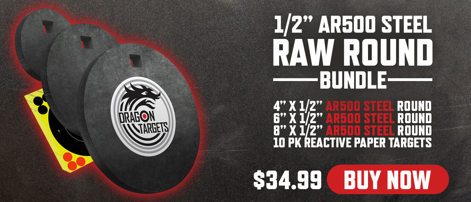 SALE Quick view Details Dragon Targets | sku: 610-0704 Dragon Targets 1/2" AR500 Steel Raw Round Bundle MSRP: Was: $109.99 Now: $34.99 Add to Cart